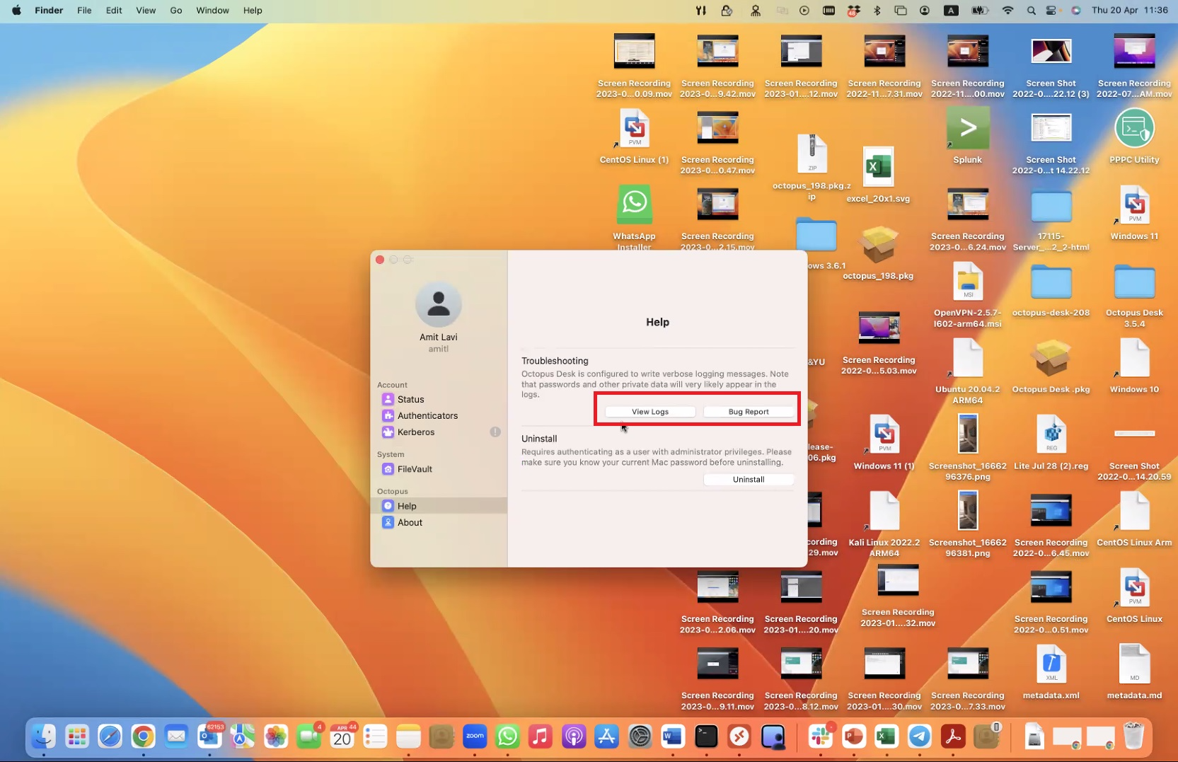 - Collect the log file that is generated (Authenticator.log) and send it to support@doubleoctopus.com.